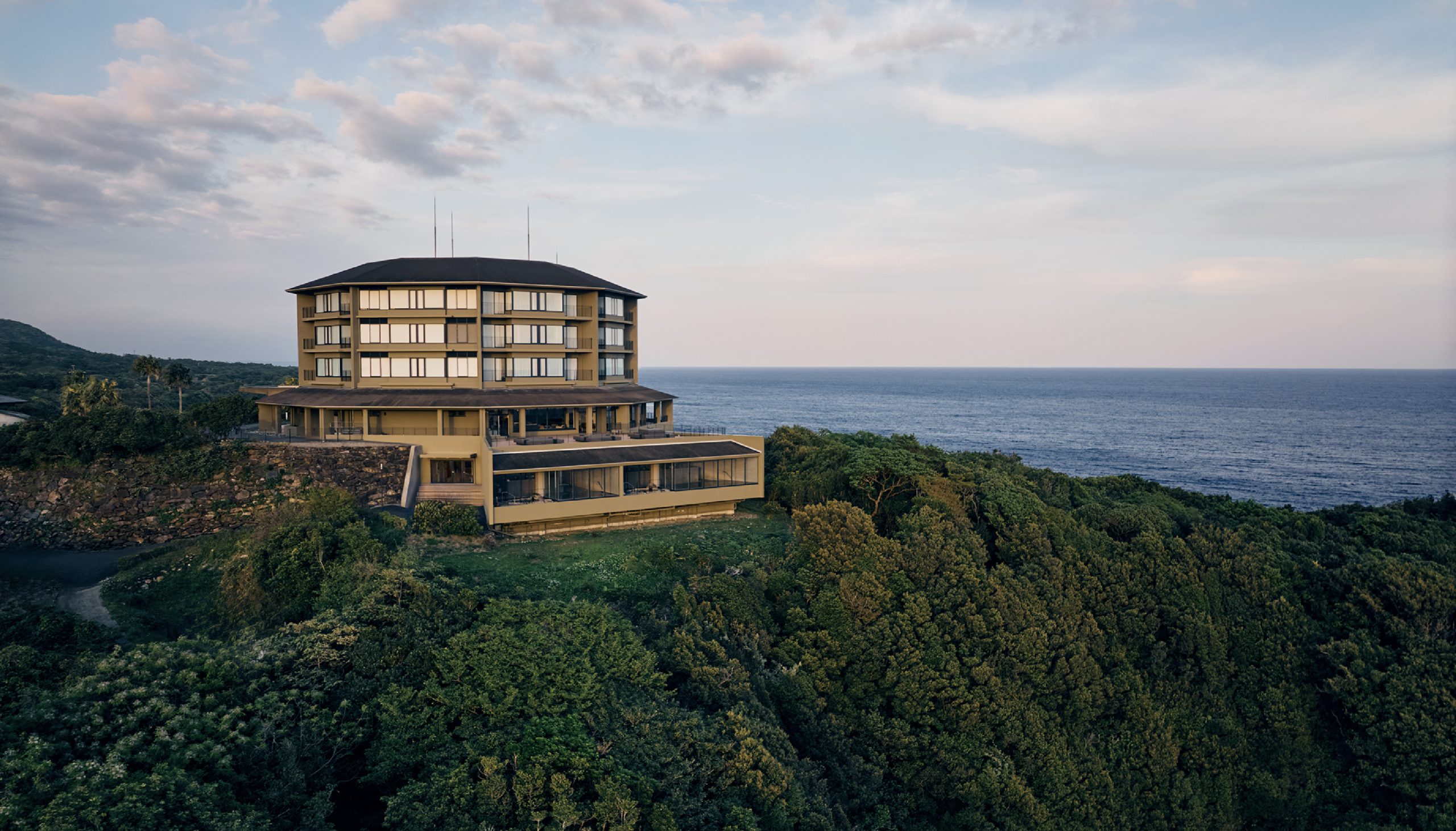 ホテル前に広がる大海原とモッチョム岳。雄大な景観に呼応する空間デザインに合わせ、SOUND COUTUREは「屋久島の色彩と音」を起点にサウンドを構築しました。
